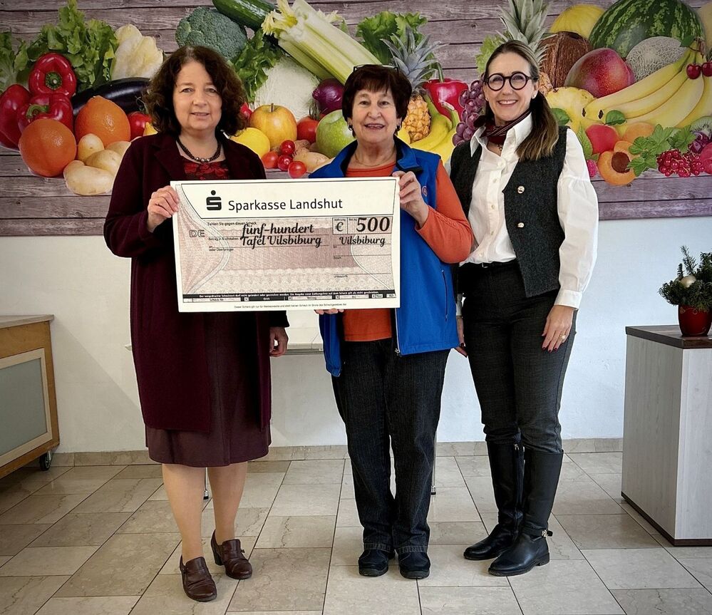 Eine Spende in Höhe von 500 Euro überreichten die beiden SPD-Kreisvorsitzenden Ruth Müller, MdL, und Erste Bürgermeisterin Sibylle Entwistle an die Tafel Vilsbiburg. Das Geld stammt aus den Einnahmen der Veranstaltung mit Landesbischof Heinrich Bedford-Strohm am Kirchweihsonntag, die von der Landkreis-SPD organisiert wurde.
