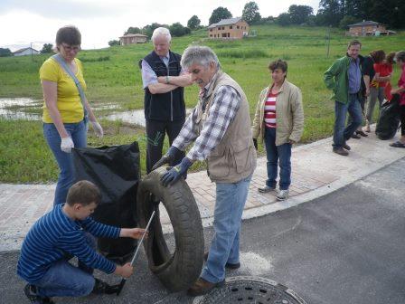 Neben zwei vollen Säcken mit Müll wurde auch ein alter Traktor Reifen gefunden und fachmännisch entsorgt.