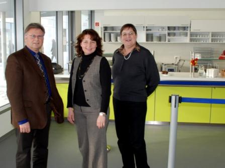 die beiden Fraktionsvorsitzenden Franz Göbl und Ruth Müller mit stv. LRin Christel Engelhard in der MensaDer Neubau des Landkreisgymnasiums beschäftigt uns auf vielen Ebenen. So fanden in den letzten beiden Wochen zwei ganztägige Besichtigungsfahrten zu den neu erbauten Gymnasien in Traunstein und in Gaimersheim statt. Dort wollten wir uns Anregungen holen.