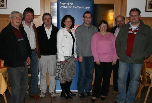 Die wiedergewählte Ortsvorsitzende Ruth Müller (4. von links) mit den Vorstandsmitgliedern der Pfeffenhausener SPD.Zur Jahreshauptversammlung mit Neuwahlen des SPD-Ortsvereins Pfeffenhausen konnte die Ortsvorsitzende Ruth Müller zahlreiche Mitglieder, unter ihnen Altbürgermeister Arno Wolf und die beiden Gemeinderäte Edgar Tretter und Hans Ferstl begrüßen. In ihrem Tätigkeitsbericht informierte Müller über die Aktivitäten des Ortsvereins seit der letzten Jahreshauptversammlung im April 2008.