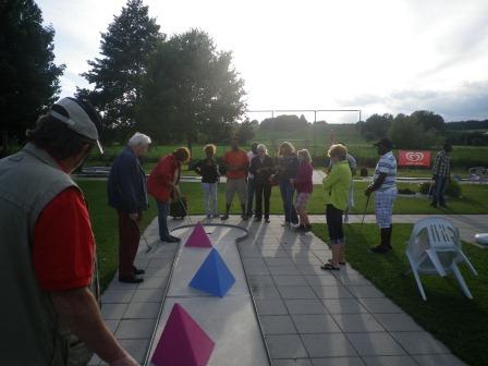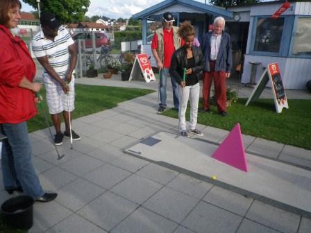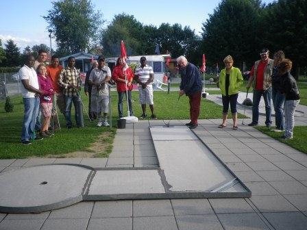 Gemeinderatsfraktion spielt Minigolf mit Asylbewerbern.