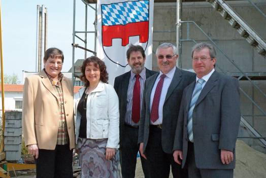 Für den Hochbauausschuss waren Bernd Zauner und Gerhard Babl als Vertreter beim Richtfest anwesend. Stellvertretende Landrätin Christel Engelhard, Vilsbiburgs stellvertretender Bürgermeister Hans Sarcher und Fraktionsvorsitzende Ruth Müller freuen sich gemeinsam mit ihren Kreistagskollegen über diese zukunftssichernde Investition in den Krankenhausstandort Vilsbiburg.