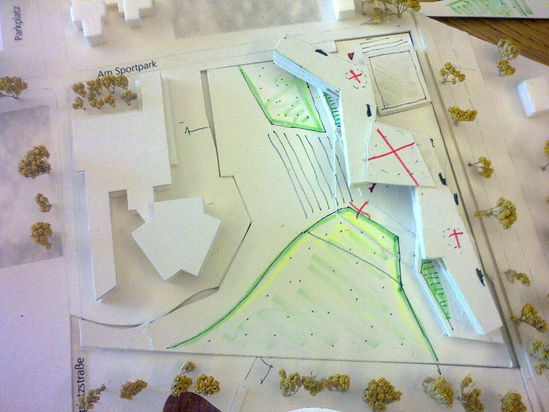 Beschlossen wurde z. B. ein optimiertes Energiekonzept nach „ENEV 2009 +x“ anzuwenden. Somit kann der Nutzenergiebedarf bei Einsatz einer Wärmepumpe und durch den Aufbau von PV-Modulen von ca. 1.250 MWh / a (bei ENEV 2009) auf 667 MWh / a gesenkt werden. Ein Passivhausstandard hätte Mehrkosten von rund 1,4 Mio Euro verursacht.